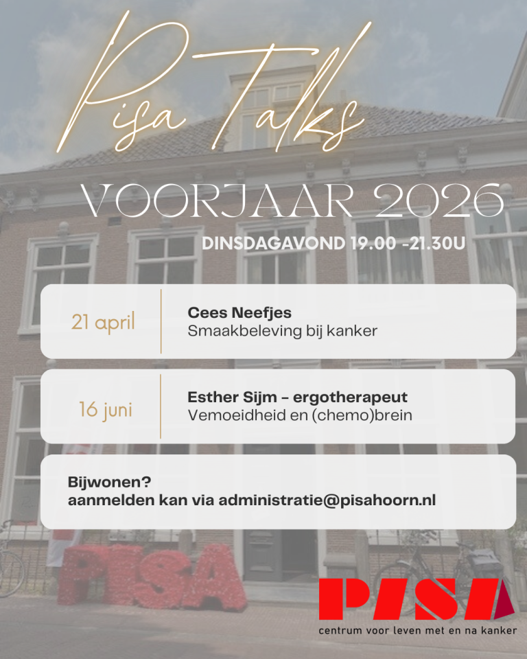 Pisa Talks dinsdag 21 april Smaakbeleving bij kanker met gast Cees Neefjes en dinsdag 16