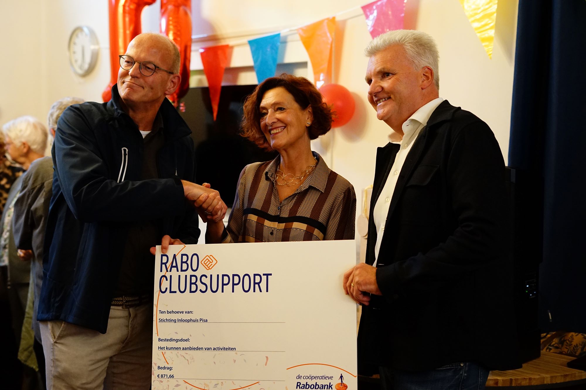 Namens de Rabobank, in het kader van de Rabo Club Support Actie, hebben wij uit handen van Jan Klaver een cheque overhandigd gekregen ter waarde van € 871,66
